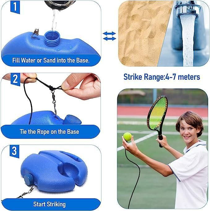 اگه عاشق تنیس هستی ولی همیشه حریفی نیست، Tennis Trainer 🎾 همراه فوقالعادهات است! این گجت با مخزن پرکردنی 🪣 که میتونی با آب 💧 یا ماسه 🏖️ پر کنی، باعث ثبات عالی روی زمین میشه.